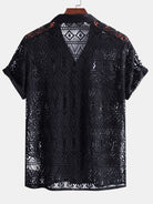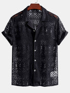 Short-Sleeve Geometric Textured Cuban Shirt