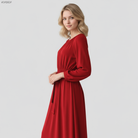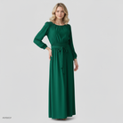 Clara maxi dress exudes pure elegance and is the perfect choice for stylish appearances. With its deep emerald green color, elegantly cut 3/4-length sleeves, and flowing full-length skirt, the dress impresses with timeless beauty. The defined waist with a tie belt accentuates a feminine silhouette, while the simple round neckline adds a classic touch to the design. Perfect for galas, evening events, or elegant gatherings – this dress will make you shine.