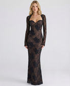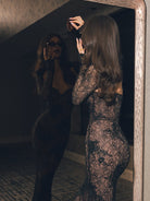 A minimalist statement with a sensual edge. The Lace Muse Maxi is designed with a sculpted corset-inspired silhouette, sheer floral lace, and a double-layer construction that balances transparency and coverage. The detachable lace sleeves let you switch between a strapless, sleek look and a long-sleeve, elevated aesthetic. Clean lines, soft structure, and effortless elegance make it perfect for nights that call for confidence without excess.