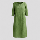 Experience elegance and comfort with this summer dress. It features a simple silhouette and a lightly embroidered texture, perfect for warm summer days. With elbow-length sleeves and a round neckline, it is ideal for any occasion, from the beach to the city.