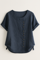 Elegant Women's Linen Blouse with Button-Front Closure