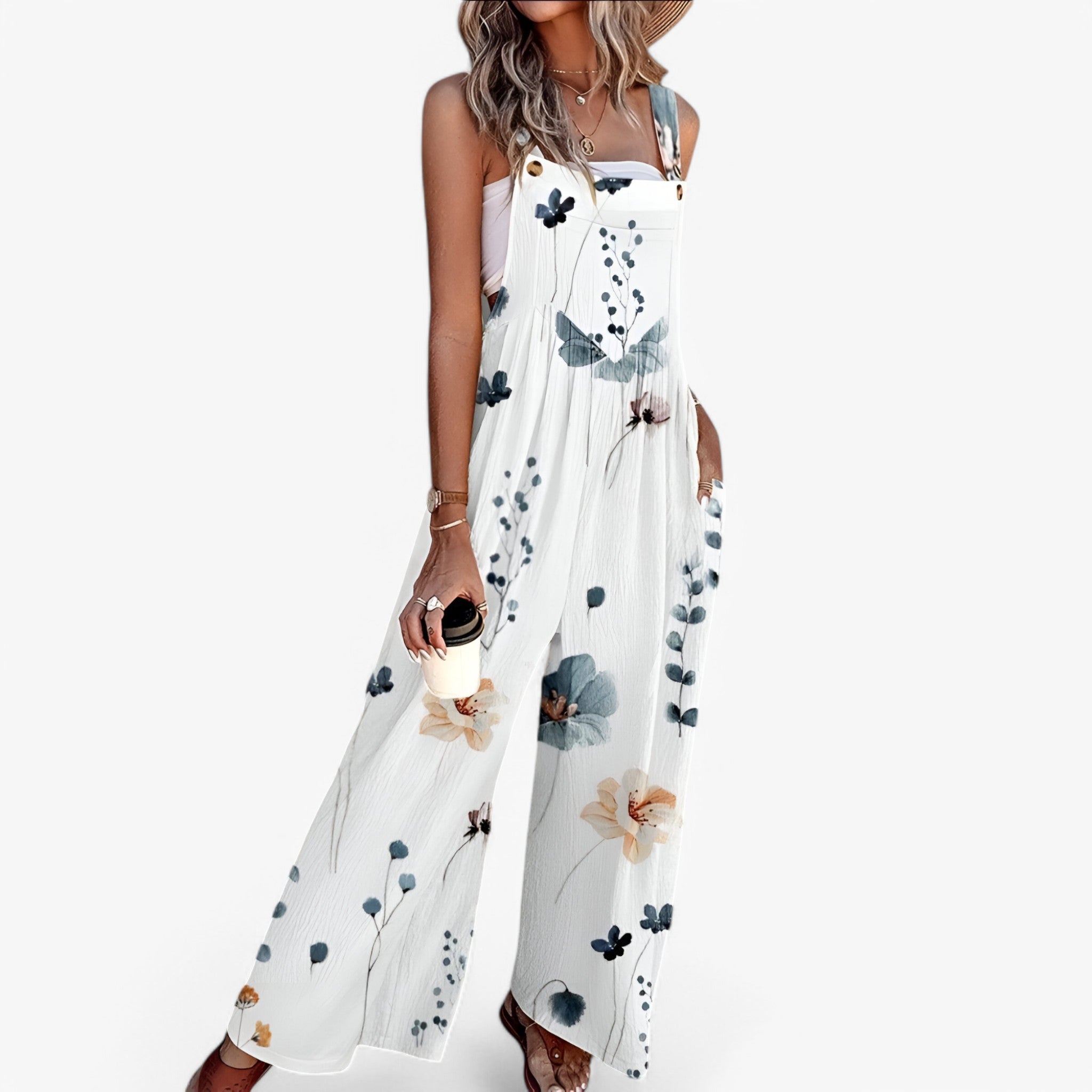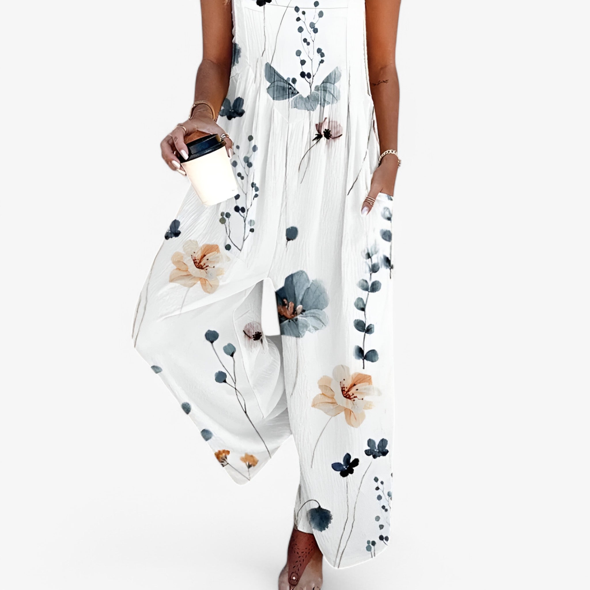 Flowy, airy, and perfect for summer. The Breezy Jumpsuit combines elegance and comfort with its sleeveless design and nature-inspired print. It’s perfect for sunny days and fits any occasion: from a stroll in the city to a summer evening outdoors.