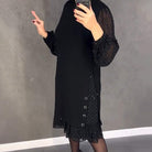 Crafted from a premium blended fabric with a soft inner feel and lightweight sheer sleeves. Designed to resist wrinkles, hold its shape, and keep you comfortable throughout the night. Durable, breathable, and made for lasting elegance.