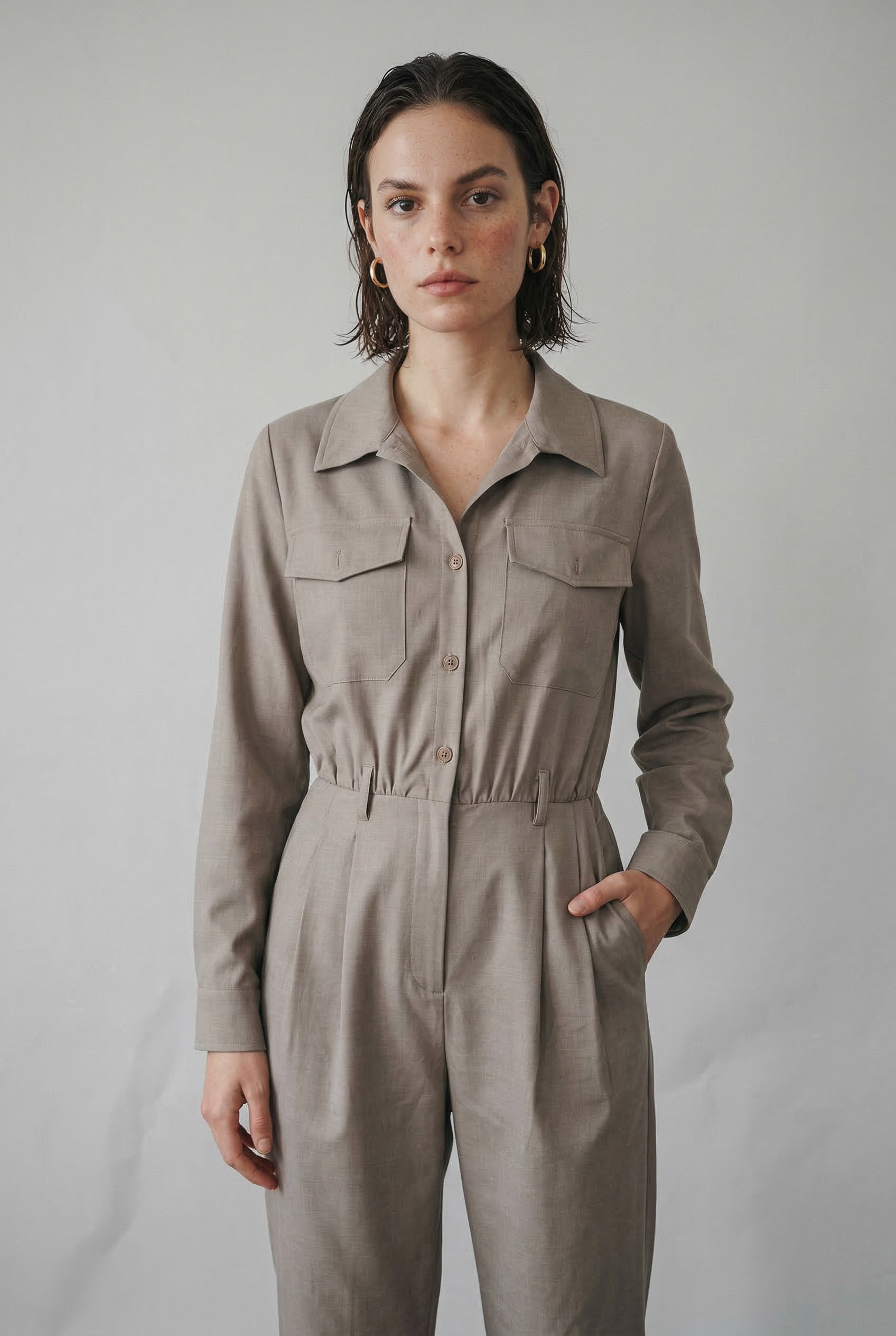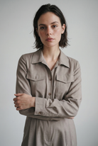 The Megan | Linen-Cotton Jumpsuit blends breathable ease with timeless polish. Designed with a relaxed, flattering silhouette and classic shirt-style collar, it brings elevated simplicity to every moment — from daytime errands to brunch with friends. Lightweight and soft with a graceful drape, it offers comfort that moves with you while flattering your natural shape. Style with sandals or loafers for chic, effortless elegance across seasons.