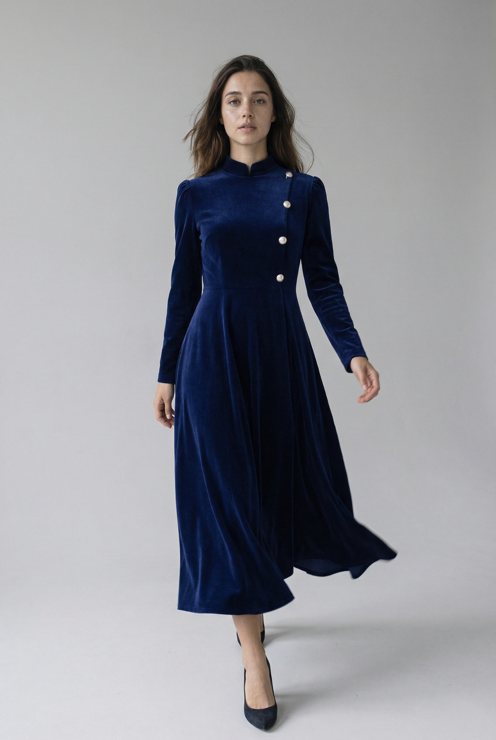 Gold-Tone Details: Polished buttons add subtle opulence and refined contrast.